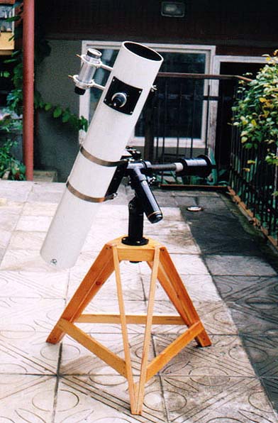 Испытания телескопа показали верность выбранных технических решений, работоспособность всей конструкции. Телескоп легко юстируется, и оптические детали надежно сохраняют свое положение при различных поворотах трубы. Работа механики отличается плавностью и отсутствием вибраций. Среди недостатков – значительный вес и габариты неразборной стойки. В качестве более "мобильного" варианта я собрал деревянную треногу, которая легко помещается в багажнике легкового автомобиля. Конструкция треноги, заимствованная из книги Ж.Тексеро "Как построить телескоп", оказалась на редкость удачной. Она устойчива, удобна и значительно легче металлической стойки.