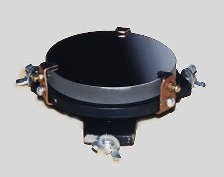 Крепление оправы главного зеркала сделано быстросъемным. Шпильки, расположенные на концах опорной пластины, вдвигаются в "Г" – образные прорези в нижнем конце трубы, оправа поворачивается по часовой стрелке и фиксируется в таком положении гайками-барашками.