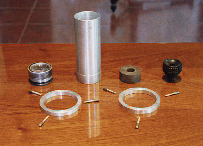 В телескопе мною используются три окуляра с фокусными расстояниями 10, 15 и 25 мм, а также 3-х-кратная линза Барлоу. При этом обеспечивается ряд увеличений от 32 крат до 240 крат. Первые два окуляра – от нивелира и зрительной трубы "Турист 4".Симметричный 25 мм окуляр и линза Барлоу были приобретены через журнал "Звездочет". Для окуляров 10 и 15 мм изготовлены стандартные посадочные втулки.